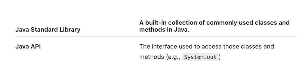 Java classes in the standard Java library are accessed using the Java Applications Programming Interface (API). The standard Java library is commonly referred to as the Java API.